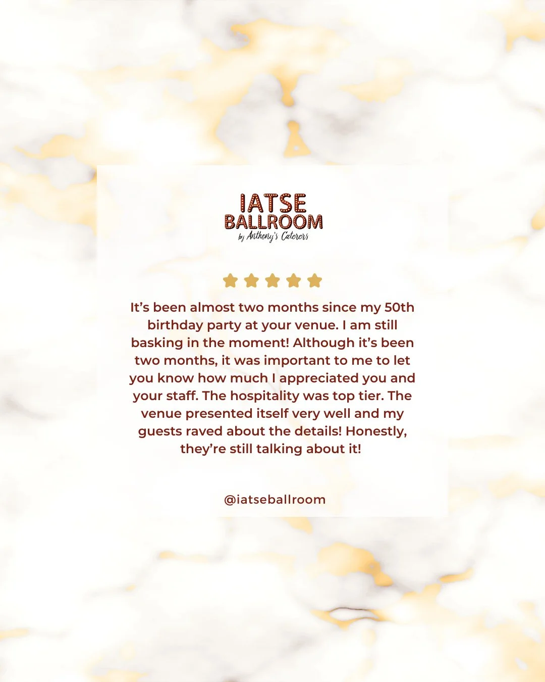 With over 30 years in catering experience, Anthony's Caterers, the exclusive caterer of the IATSE Ballroom.